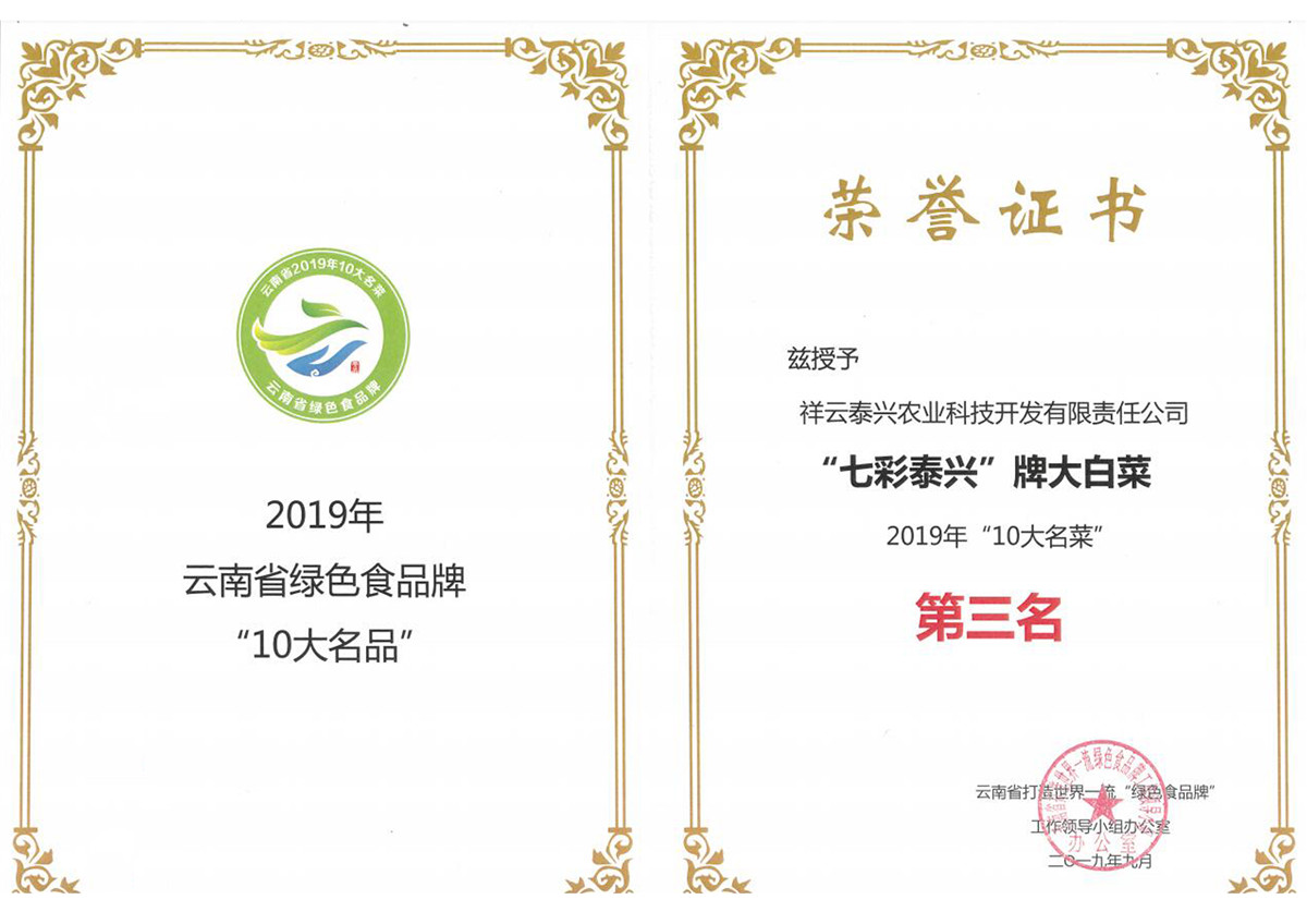 “七彩泰興”牌大白菜榮獲2019年云南省“十大名品”中“十大名菜”第三名。公司團隊參加云南省第五屆創(chuàng)新創(chuàng)業(yè)大賽榮獲三等獎并入圍全國總決賽。2019年實現(xiàn)銷售收入8094萬元,其中電商銷售1273萬元。