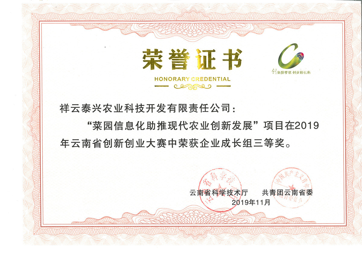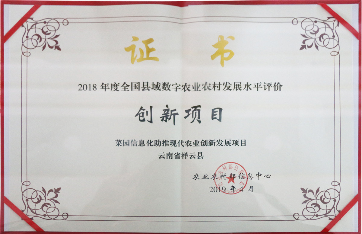 公司“菜園信息化助推現(xiàn)代農(nóng)業(yè)創(chuàng)新發(fā)展項目”獲農(nóng)業(yè)部“2018年度全國縣域數(shù)字農(nóng)業(yè)農(nóng)村發(fā)展水平評價創(chuàng)新項目”,也是云南省唯一入選的創(chuàng)新項目。公司吸納和轉(zhuǎn)移農(nóng)村勞動力1425人,開展新技術(shù)示范6250畝,培訓(xùn)農(nóng)民1500多人(次)。三農(nóng)綜合服務(wù)中心立足服務(wù)“三農(nóng)”發(fā)展,助力鄉(xiāng)村振興,是滇西地區(qū)首家“三農(nóng)”綜合服務(wù)中心。