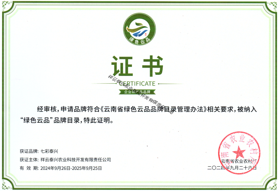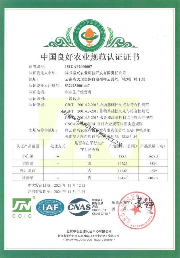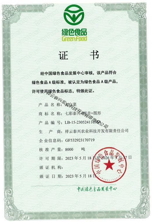 公司再次通過GAP認(rèn)證、共制定了24個企業(yè)標(biāo)準(zhǔn),“七彩泰興”牌蔬菜榮獲2021年云南省“10大名菜”,獲得實用新型專利28項、獲受理發(fā)明專利2項。